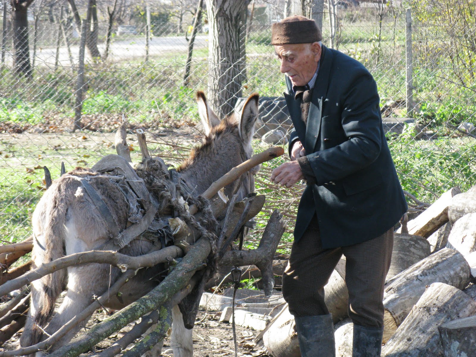 Da vi nu var midt i vinområdet ville vi gerne købe noget lokalt hjemmebrygget vin. Så vi gjorde en lille afstikker til en lokal landsby hvor vi spottede en gammel mand der var i gang med at transportere brænde hjem med sit æsel. Vi (dvs. Dima) spurgte ham hvor vi kunne købe vin og han sagde at vi kunne købe noget af ham. Vi blev inviteret indenfor i hans hus så vi kunne smage på vinen. Der blev også budt på ost og brød for vi kunne ikke købe vin uden at blive beværtet. Den gamle mand på 86 levede sammen med sin kone på 78 i deres velholdte hus uden nogen form for hjælp, så det må meget sund vin de laver. Jeg fik 10 liter med mig hjem, som vil holde mig sund i lang tid! Børnene var så vidt vi kunne forstå i Tbilisi og de to gamle måtte klare sig i deres lille velholdte hus uden drikkevand (de klarede sig med regnvand). Da vi havde socialiseret en tid blev æslet der stod i indhegningen udenfor utålmodigt, og sparkede på døren ind til gårdspladsen. Det blev også lukket ind så det kunne deltage i selskabeligheden. De to gamle fortalte at de var vældig glade for de penge for deres vin fordi de skulle til bryllup næste dag og så kunne de give lidt penge til brudeparret, således som traditionen er. Det var åbenbart ikke hver dag de fik penge mellem hænderne.