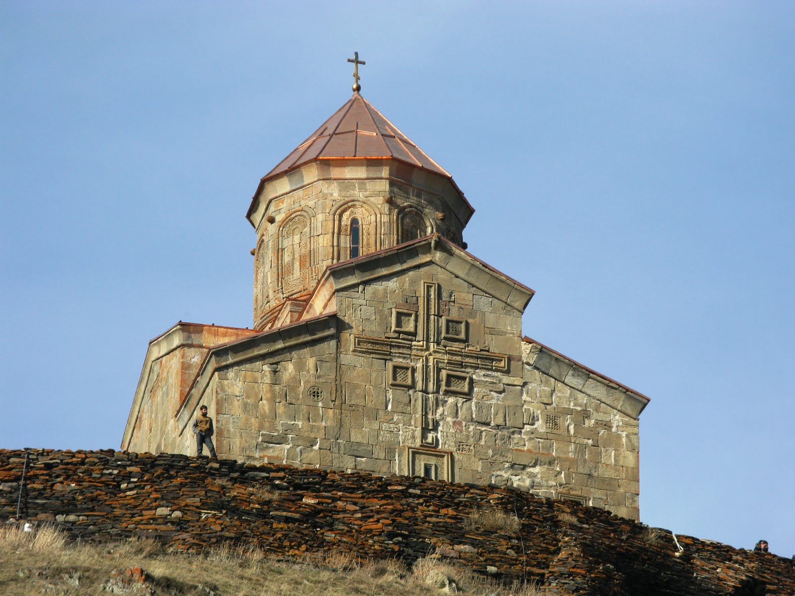 The Gergeti Trinity Church is famous for its scenic location. Its isolated location on top of a steep mountain surrounded by the vastness of nature has made it a symbol for Georgia. In times of danger, precious relics from Mtskheta, including Saint Nino's Cross were brought here for safekeeping. During the Soviet era, all religious services were prohibited, but the church remained a popular tourist destination. The church is now an active establishment of the Georgian Orthodox and Apostolic Church